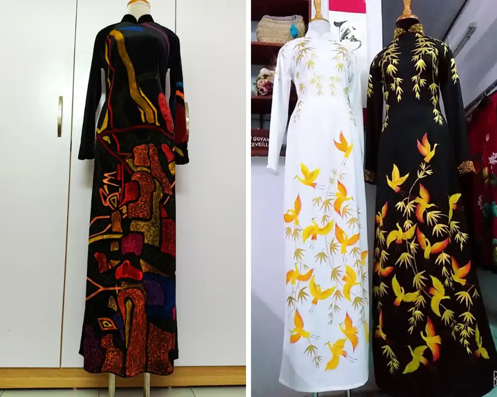 Khi chọn hoa văn cho áo dài big size, hãy tránh sử dụng hoa văn lớn và nhiều đường nét. Những hoa văn lớn và rườm rà có thể tạo vẻ bề thế và làm cho thân hình trông to hơn. Thay vào đó, chọn những hoa văn nhỏ, tối màu và đơn giản để tạo điểm nhấn nhẹ nhàng và tinh tế trên áo dài.